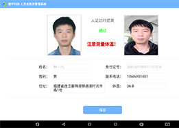 方案背景 受新冠肺炎疫情影響延長春節假期后,復工大潮來臨,疫情防治進入關鍵期,全國多地實施封閉式管理,嚴格管控人員出入,采取全員登記制度,但目前大部分地區仍使用人工登記,手寫登記項目繁多,如姓名、電話、體溫、地址等,同時頻繁交叉接觸寫字筆會增加感染風險,人工識別身份信息準確率較低,影響疫情防控工作。 方案介紹 捷宇科技依托多年在圖像視覺與智能交互領域上的技術積累與優勢,針對目前嚴峻的疫情防控形勢,推出《捷宇科技防疫登記信息管理解決方案》。 該方案由前端采集設備+后端管理系統組成,通過人臉識別、身份證識別、指紋采集等功能,1秒即可完成核驗身份信息,信息采集準確率高, 核驗全程無接觸自動化 ,降低了交叉感染的風險。 結合第三方測溫儀,支持錄入體溫信息,管理系統自動同步保存人員信息,免去打字錄入,同時可保存每日核驗人數,可排查人員是否來自疫情嚴重地區,若出現體溫異常人員便于查找,減輕一線防疫工作人員的壓力。 方案優勢 無接觸 身份核驗自動化,全程無接觸,降低感染風險 好管理 支持人員登記信息批量導出與查找,減輕防疫人員工作壓力 多模態 設備類型豐富,針對不同場景,多種識別模式可選 高精準 核驗軟件基于深度學習開發,準確率超過99.5% 推薦產品 DC13雙目活體檢測模組 配置300萬寬動態+130萬紅外雙目活體檢測攝像頭 N1330雙目攝像頭 配置300萬寬動態+130萬紅外雙目活體檢測攝像頭  支持吸附式、夾持式、三角架式 X2DC雙目身份核驗儀 配置雙目活體檢測攝像頭  采用USB接口,即插即用 X3DC雙目身份核驗終端 配置雙目活體檢測攝像頭、身份證模塊、指紋模塊 Z10P人證核驗終端 配置身份證模塊、指紋模塊、單/雙目攝像頭等 Z10S人證核驗終端 配置身份證模塊、指紋模塊、單/雙目攝像頭等 Z20多模塊核驗終端 配置單/雙目攝像頭、雙屏異顯異觸、身份證模塊、指紋模塊、二維碼模塊等 M70移動式人證核驗終端 配置單/雙目攝像頭、身份證模塊、指紋模塊、電池等